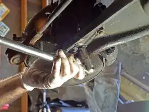 Установите монтировочный рычаг на золотую гайку внизу рычага подвески.