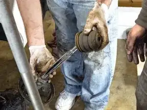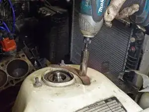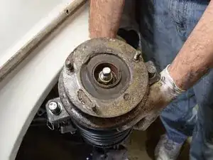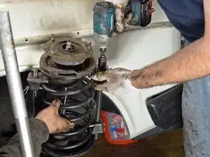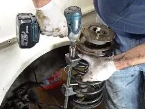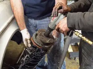 Снимите 24 мм гайку вверху сборки стойки с помощью ударного ключа.