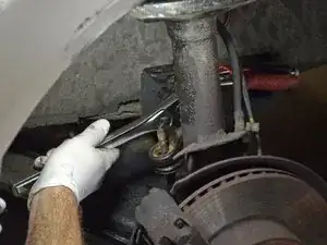 Снимите 19 мм гайку наконечника рулевой тяги с помощью трещотки или ударного пистолета.