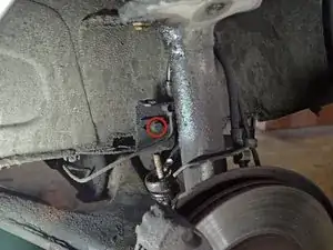 Установите под шаровой шарнир домкрат, чтобы поддерживать его после снятия трёх болтов, соединяющих шаровой шарнир и рычаг подвески.