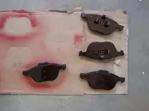 Нанесите антисвистящее покрытие на стальные задние пластины новых тормозных колодок.