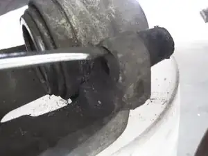Используйте плоскую отвёртку, чтобы выдавить втулку через её отверстие в суппорте.
