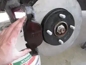 Колодка удерживается тремя металлическими защёлками. Может потребоваться приложить силу и пошевелить колодку, чтобы освободить её.