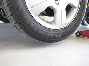 Достаточно поднять автомобиль до тех пор, пока колесо не оторвётся от земли.