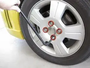 Используйте баллонный ключ на 19 мм, чтобы ослабить каждую гайку колеса на полоборота.