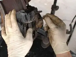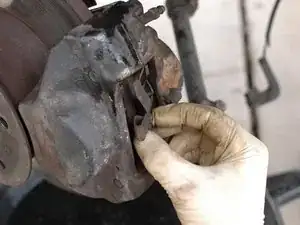 Старые колодки теперь можно выдвинуть из суппорта. При снятом суппорте они могут выскользнуть в любую сторону. При установленном суппорте они выскользнут только в сторону, противоположную диску.