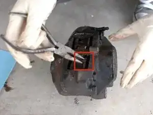 Обратите внимание, что существуют разные варианты пружин и шпилек в зависимости от производителя суппорта и возраста вашего W123. Некоторые шпильки имеют скобы, удерживающие их на месте, которые нужно снять перед выбиванием. См. руководство по замене задних тормозных колодок, чтобы увидеть этот вариант.