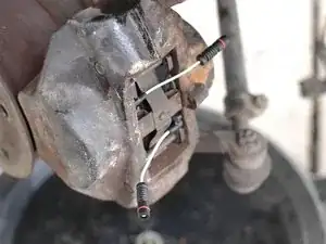 Первым шагом снимите датчики износа тормозных колодок. Сначала отключите их от жгута датчиков, прикреплённого болтами к суппорту.