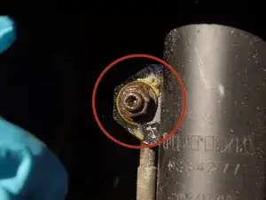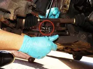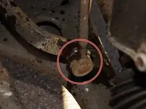 Распылите проникающую смазку на нижнюю гайку, которая крепит тягу стабилизатора к стабилизатору.