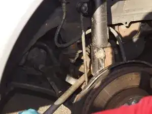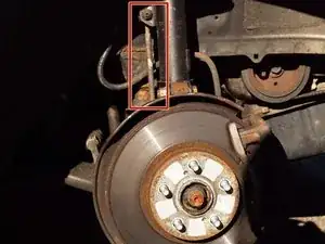 Тяга стабилизатора расположена за тормозным щитком и соединяет стабилизатор с подвеской.