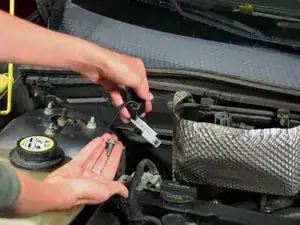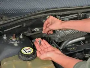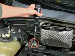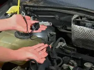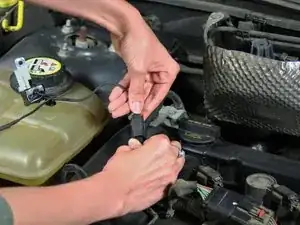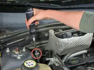Покажем, как удалить подавляющий конденсатор радио в Ford Focus 2007 года и установить новый конденсатор, используя трещоточную отвертку с насадкой 8 мм для гаек.