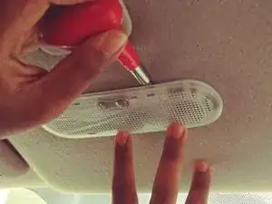 Снимите пластиковую крышку потолочного света, используя руки или инструмент для открывания.