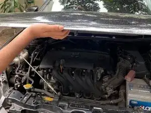 Потяните за рычаг вспомогательного замка, а затем поднимите капот вверх.