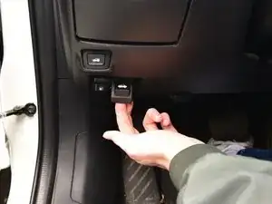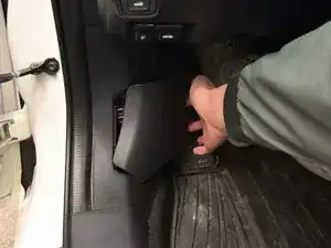 Потяните за выемку на задней панели, расположенной слева в области для ног водителя, чтобы снять крышку.