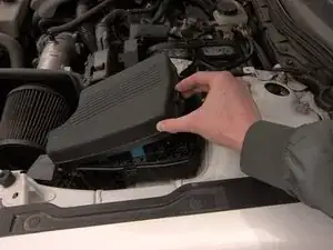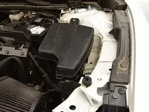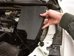 Сзади блока предохранителей, расположенного с правой стороны моторного отсека, нажмите фиксатор и поднимите крышку, чтобы отделить её от основания.
