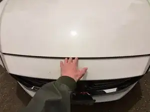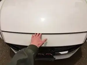 Сдвиньте рычажок освобождения капота, расположенный под передней центральной частью капота, влево, чтобы отжать защёлку капота.