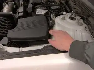 Другой рукой поднимите капот, удерживая рычажок открытым.