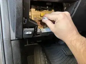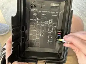 Вставьте новый предохранитель прямо в открытый слот, удерживая его с помощью инструмента для извлечения предохранителей, как в шаге 5.