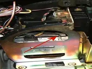 Сзади автомобиля найдите привод навигационного компьютера и вставьте по 4 согнутые части вешалки или «инструмент для снятия автомагнитолы» в отверстия привода