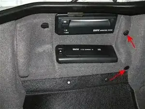 Снимите винты пластиковой обивки багажника, чтобы получить доступ к проводке за навигационным компьютером