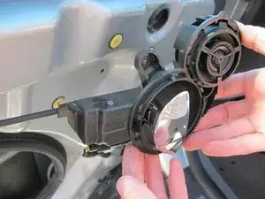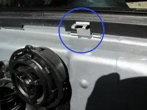Первый шаг — снять ручку двери и защитную крышку динамика. Это легко сделать, поддев пластмассовые зажимы плоской отверткой или, возможно, даже руками.