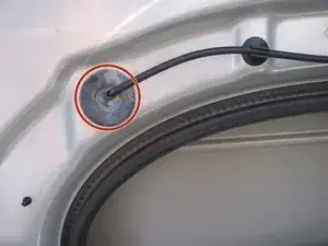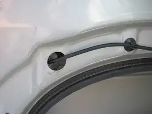 Снимите резинку, которая удерживает замок двери, с дверной панели.