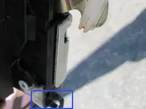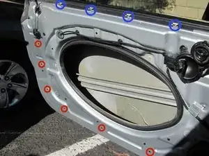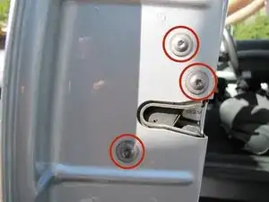 Механизм привода прикреплен к дверце автомобиля тремя винтами, которые находятся на торце двери (с левой стороны при взгляде на отверстие). Эти винты можно удалить с помощью отвертки Torx T25.
