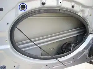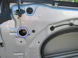Сложите резиновую заглушку, которая находится на верхней левой стороне дверной панели, затем введите ее внутрь отверстия, чтобы поместить кабель в внутреннюю часть дверной панели.