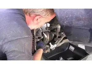 Снимите два болта 19 мм, удерживающие ступичный узел на нижнем рычаге подвески.