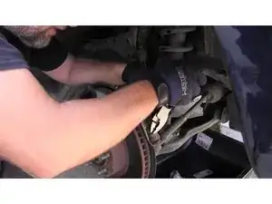 Снимите наружную рулевую тягу, удалив шплинт и 19 мм гайку.
