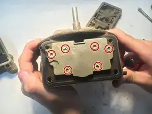 Удалите шесть шестигранных винтов размером 2.5 мм из вторичного модуля управления.