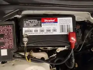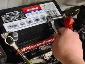 Отключите аккумулятор с помощью трещотки и головки на 10 мм.