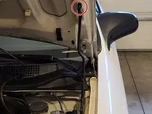 Зафиксируйте стойку капота в двух отверстиях, расположенных с правой стороны капота, чтобы удерживать его в поднятом положении.
