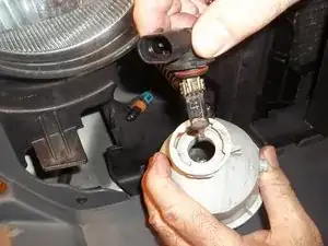 Снимите гнездо фары с крепления, повернув против часовой стрелки.
