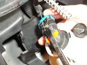 Снимите жгут проводов с гнезда фары, приподняв защелку плоской отверткой.