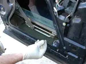 Воспользуйтесь переключателем, чтобы опустить стекло до тех пор, пока нижняя направляющая стекла не станет видна. Обратите внимание, что переключатель установлен в разъем, как упоминалось на предыдущем шаге.