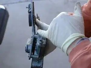 Поскольку стекло теперь отсоединено от механизма регулятора и зафиксировано, можно приступить к демонтажу регулятора.