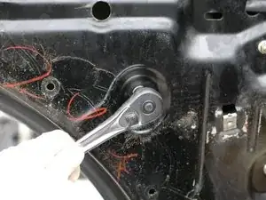 Если электростеклоподъемник не двигается из-за неисправности электропитания или двигателя, возможно, придется залезть внутрь проема двери, чтобы открутить два болта М10. Это возможно, но сложнее.