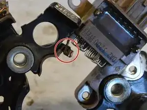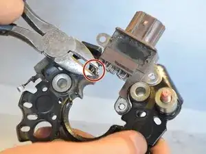 Найдите маленький металлический зажим, прикрепляющий регулятор напряжения к выпрямителю.