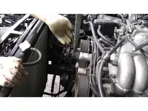 Начните со снятия кожуха вентилятора, закреплённого четырьмя болтами на 10 мм.