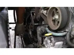 Поскольку крышка ремня снята и доступ облегчён, рассмотрите замену направляющих, натяжителя, приводных ремней, термостата и патрубка.