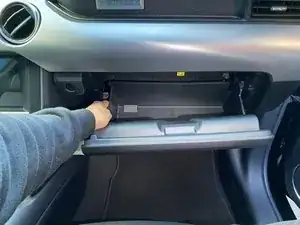 Посмотрите на правую сторону перчаточного ящика, чтобы найти рычаг. Поднимите рычаг вверх, а затем сдвиньте его вправо. Рычаг должен легко отрываться.