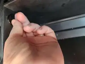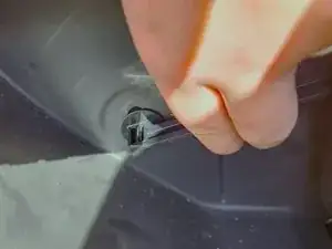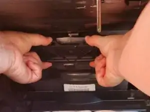 Используйте обе руки, чтобы потянуть вниз за пластиковую крышку салонного фильтра, чтобы снять ее.