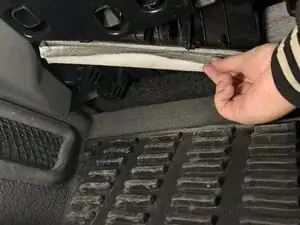 Открутите три пластиковых винта, крепящих пенопластовую панель под бардачком, руками.