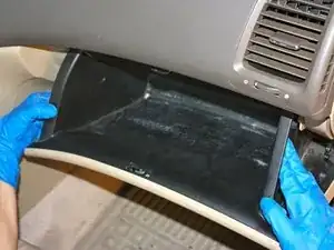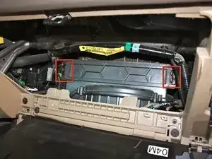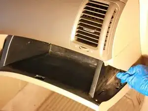 Перчаточный ящик зафиксирован с обеих сторон. Нажмите внутрь на обе стороны ящика, чтобы снять его с фиксаторов и медленно опустите вниз.