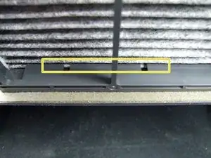 Теперь, когда корпус салонного фильтра виден, найдите фиксирующие защёлки по левому и правому краям.