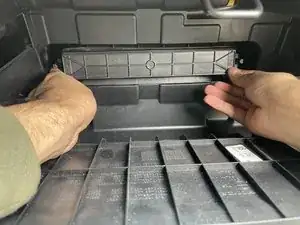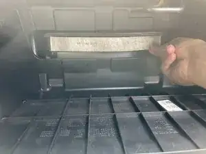Вставьте новый салонный фильтр в том же направлении, что и предыдущий (вниз).