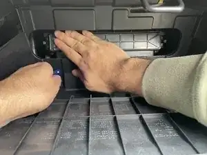 Нажмите на левые и правые петли, чтобы освободить крышку отсека салонного фильтра.