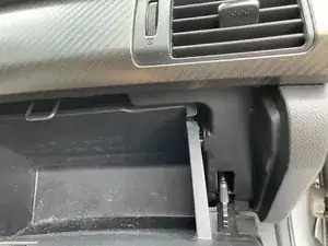 Убедитесь, что перчаточный ящик не висит на петлях.