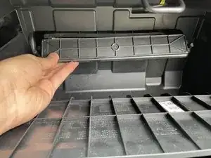 Осторожно снимите крышку и вытащите старый салонный фильтр из держателя.